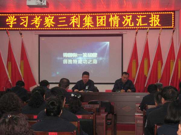 4月9日上午,公司召開了考察學習匯報會。公司領導班子成員及機關干部職工參加了會議。會議由常務副經理徐學良主持。會上,徐學良副經理作為考察團(7人)代表就此次學習考察的情況向與會人員作了匯報,他結合三利集團的宣傳片及軍訓匯演就三利集團的發(fā)展現(xiàn)狀與企業(yè)的軍事化管理和獨特的企業(yè)文化進行了詳細介紹,并談了個人感受與體會。他主要從五個方面進行了歸納總結:一是學習三利人大家庭的團隊理念;二是學習三利人高、精、嚴、細的工作作風;三是學習三利人完善的自我素質;四是學習三利人獎罰分明、一視同仁的管理手段;五是學習三利人熱情飽滿的精神狀態(tài)。