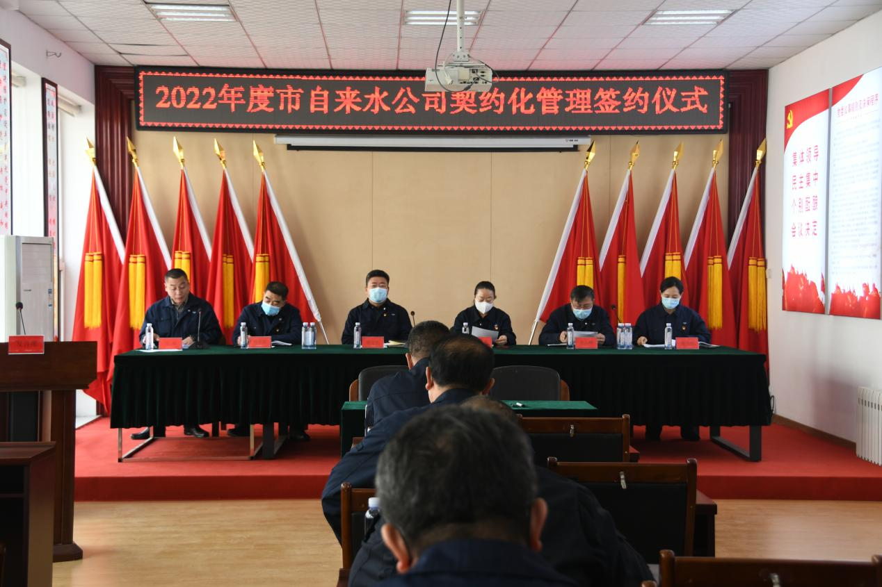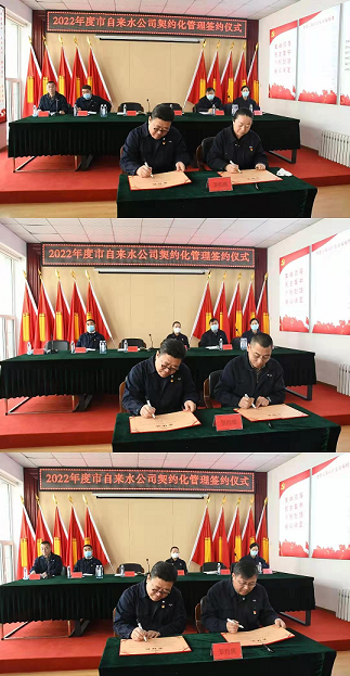 3月10日上午,市自來水公司在公司大會議室舉行2022年度契約化管理簽約儀式及營商環(huán)境提升年承諾書簽定儀式。會議由公司副經(jīng)理馬旭主持,公司領(lǐng)導(dǎo)班子成員、相關(guān)責(zé)任部門及二級法人單位負(fù)責(zé)人參加會議。