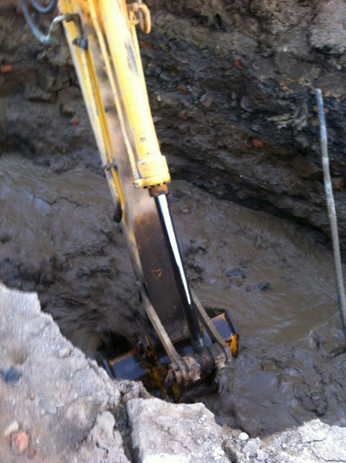 2015年4月16日下午4:30分,二分公司供水維修隊(duì)接到報(bào)修電話,岔溝施工隊(duì)負(fù)責(zé)人稱他們?cè)诮ㄔO(shè)位于市政府后身的岔溝回遷樓過程中,因鉤機(jī)作業(yè)時(shí)挖壞了供水主管道,造成大量自來(lái)水外流?,F(xiàn)場(chǎng)破壞面積過大,已造成周邊水流大量淤積。接到電話后,公司分管營(yíng)業(yè)的副經(jīng)理馬旭和營(yíng)業(yè)二分公司經(jīng)理張志明立即帶領(lǐng)維修隊(duì)人員在20分鐘內(nèi)趕到現(xiàn)場(chǎng),在進(jìn)行勘察的同時(shí),搶修物質(zhì)運(yùn)達(dá)維修現(xiàn)場(chǎng),一場(chǎng)供水管線搶修工作緊張而有序地展開。