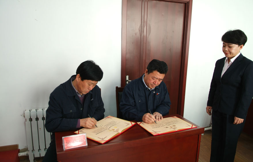 公司經(jīng)理李文生分別與生產(chǎn)、營業(yè)、監(jiān)察大隊等部門簽訂了責(zé)任狀。先進個人代表分別發(fā)言。
