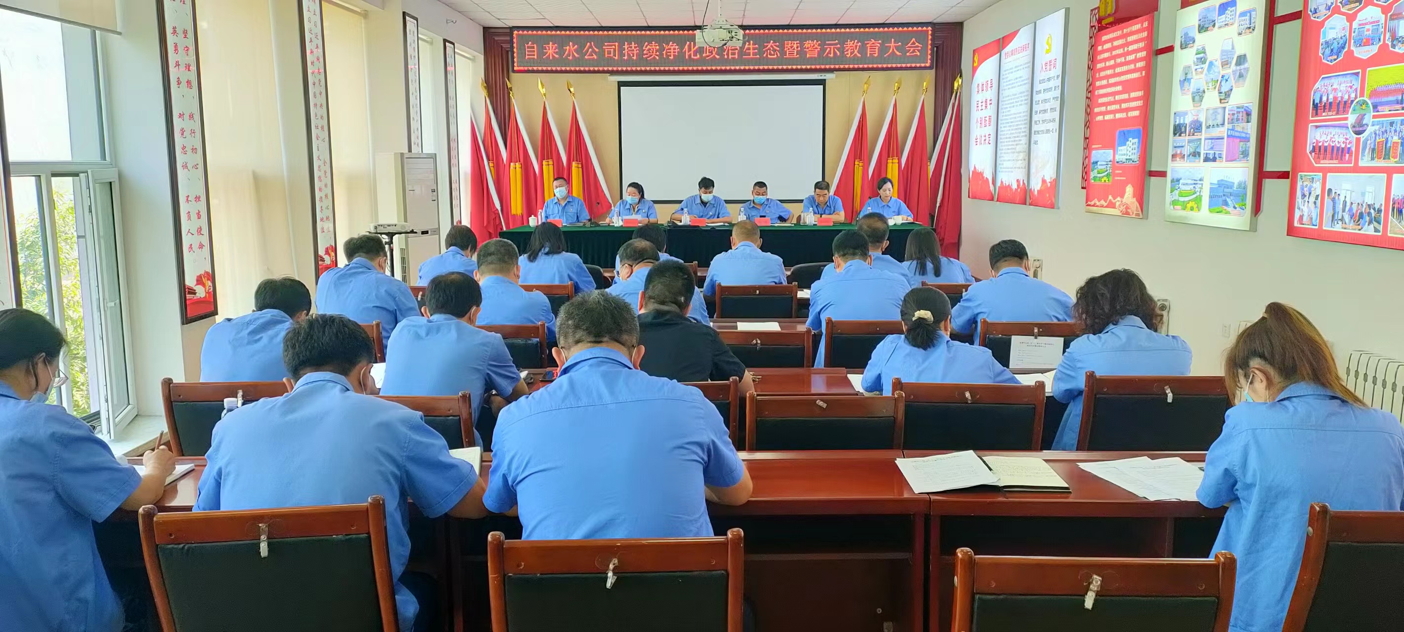 為深入貫徹省、市持續(xù)凈化政治生態(tài)推進(jìn)會(huì)暨警示教育大會(huì)精神,教育和引導(dǎo)黨員干部始終繃緊紀(jì)法之弦,筑牢“不想腐”的思想堤壩。6月16日,市自來(lái)水公司召開(kāi)黨委中心組理論學(xué)習(xí)暨持續(xù)凈化政治生態(tài)警示教育大會(huì),持續(xù)鞏固提升風(fēng)清氣正政治生態(tài),營(yíng)造良好干事創(chuàng)業(yè)氛圍。黨委書(shū)記張旭濱主持會(huì)議,黨委班子成員、各支部書(shū)記、中層干部參加會(huì)議。