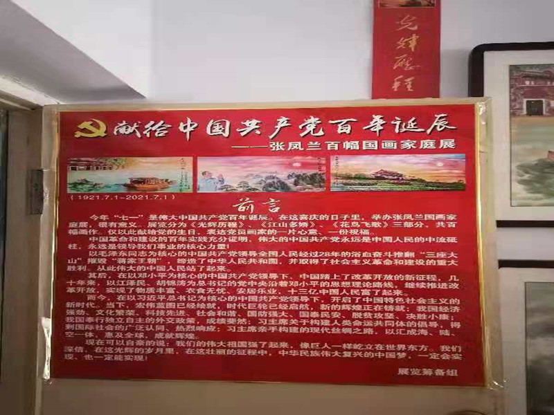 畫展作品由我市退休干部張青山、張鳳蘭夫婦潛心創(chuàng)作,專門在自己家中展出,分為《光輝歷程》《江山多嬌》《花鳥飛歌》三部分,共百幅作品,重現(xiàn)紅色歷史,展示了中國共產黨百年奮斗歷程,同時展出祖國大美河山及家鄉(xiāng)風景作品,贊頌了幸福美好生活的和諧安寧。