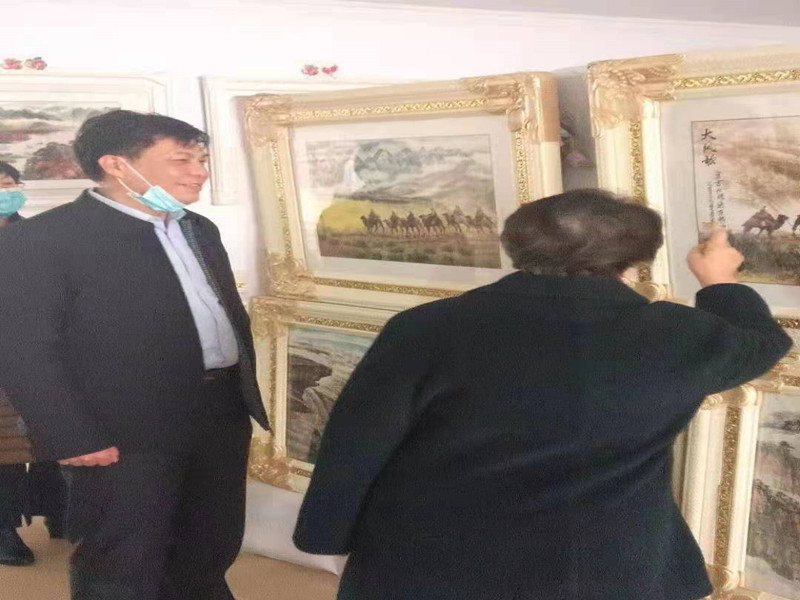 參觀中公司黨委張書記與作家張鳳蘭老師就一些作品進行了親切交流,并問候老人家近況,當得知擺放展品的家里存在用水難題時,現(xiàn)場辦公聯(lián)系了公司營業(yè)分公司幫助解決自來水問題,保證展覽地點的用水,老人家表示非常感激。