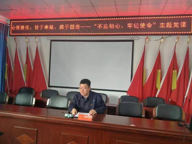 隨后,張書(shū)記用四個(gè)小故事進(jìn)行了一場(chǎng)精彩、生動(dòng)的講解,就什么是初心和使命進(jìn)行闡述,通過(guò)小故事來(lái)教育大家:黨員領(lǐng)導(dǎo)干部家庭風(fēng)氣正,事業(yè)才能枝葉茂盛;全體黨員干部要對(duì)黨忠誠(chéng)和老實(shí),無(wú)論任何時(shí)候,任何地方,都不要忘記自己是一名黨員,要堅(jiān)決維護(hù)黨和人民的利益;在任何一個(gè)崗位上,人人都能通過(guò)辛勤勞動(dòng)實(shí)現(xiàn)自身發(fā)展的機(jī)會(huì),只要不忘初心、奮勇前進(jìn),都會(huì)有價(jià)值有閃光。