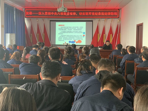 為深入開(kāi)展“不忘初心、牢記使命”主題教育,進(jìn)一步推進(jìn)黨風(fēng)廉政建設(shè)深入開(kāi)展,貫徹落實(shí)中央八項(xiàng)規(guī)定精神,根據(jù)公司黨委關(guān)于開(kāi)展“不忘初心、牢記使命”主題教育安排,10月23日下午,公司黨委特邀市委第三巡察組組長(zhǎng)梁志遠(yuǎn)為全體黨員干部上了一堂題為《深入貫徹中央八項(xiàng)規(guī)定精神,切實(shí)筑牢黨紀(jì)條規(guī)紀(jì)律防線(xiàn)》的專(zhuān)題黨課。公司黨委書(shū)記張旭濱主持會(huì)議,公司基層副職以上干部和全體黨員100余人參加了學(xué)習(xí)。