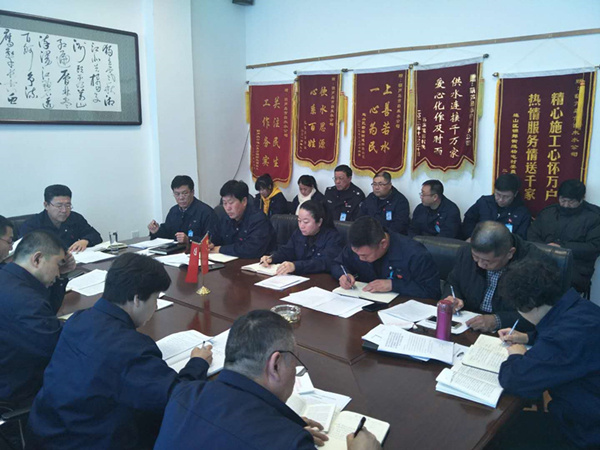 會上集中觀看視頻---《習近平在學習貫徹黨的十九大精神研討班開班式上的重要講話》和《中國共產(chǎn)黨第十九屆中央紀律檢查委員會第二次全體會議公報》,集中學習了《黨的十九大報告》原文第三部分——新時代中國特色社會主義思想和基本方略,下發(fā)了學習資料。通過學習,黨員干部對黨的十九大精神和習近平新時代中國特色社會主義思想有了更加深入的理解。新時代中國特色社會主義是我們黨領導人民進行偉大社會革命的成果,也是我們黨領導人民進行偉大社會革命的繼續(xù),必須一以貫之進行下去。會議強調,我們要全面深入貫徹落實黨的十九大精神,深入理解和把握習近平新時代中國特色社會主義思想,要在聯(lián)系實際,學以致用上下工夫,同時要進一步提高中心組學習的制度化、規(guī)范化水平,中心組全體成員要切實增強學習的主動性和積極性、自覺性,進一步堅定理想信念,牢記黨的宗旨,結合部門實際,提升工作實效,發(fā)揮示范表率作用,用黨的十九大精神指導實踐、推動工作,為公司及供水事業(yè)健康持續(xù)發(fā)展提供堅強保證。