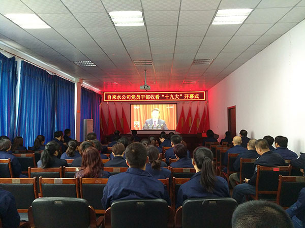 2017年10月18日上午,自來水公司組織機(jī)關(guān)干部在大會議室集中全程收看中國共產(chǎn)黨第十九次全國代表大會開幕盛況,認(rèn)真聆聽習(xí)近平總書記代表十八屆中央委員會向大會所作的報告。會后,大家紛紛表示聽了習(xí)近平總書記的報告,感到非常振奮,作為供水工作者,我們將以更加飽滿的熱情投身到工作中,以腳踏實(shí)地的工作貫徹十九大精神,進(jìn)一步提升城市優(yōu)質(zhì)供水保障與服務(wù)能力,為新時代中國特色社會主義建設(shè)貢獻(xiàn)自己的一份力量。