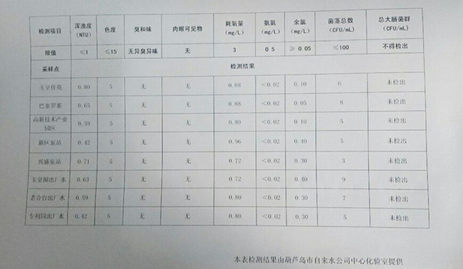 2018年3月30日葫蘆島市城市供水管網(wǎng)水質(zhì)信息